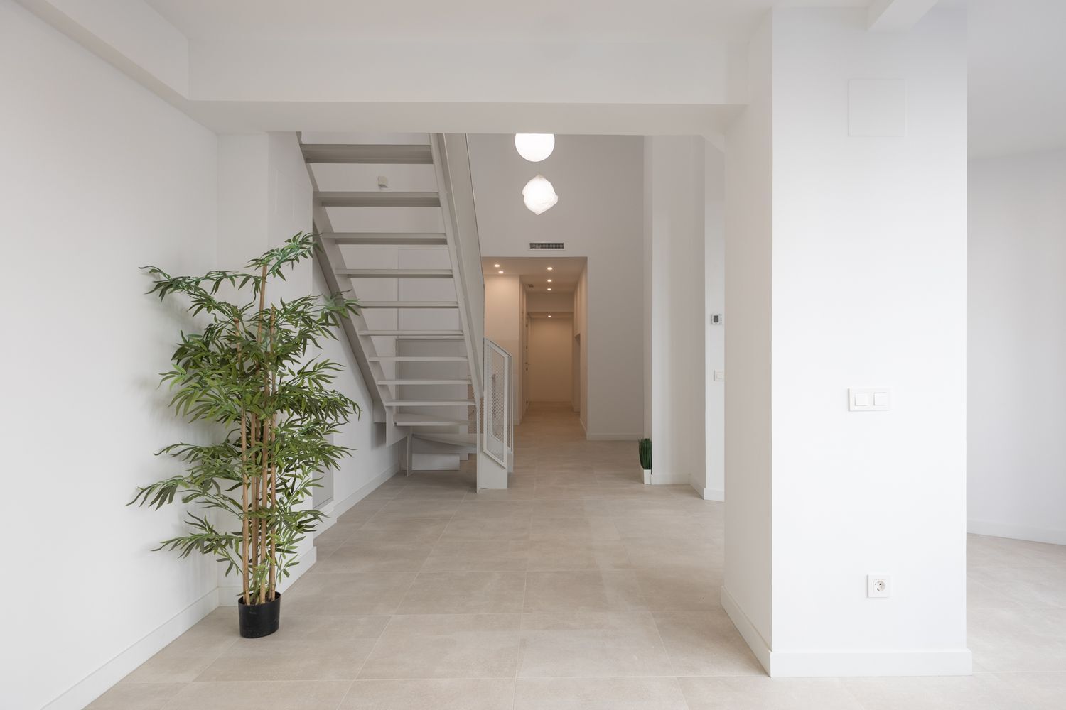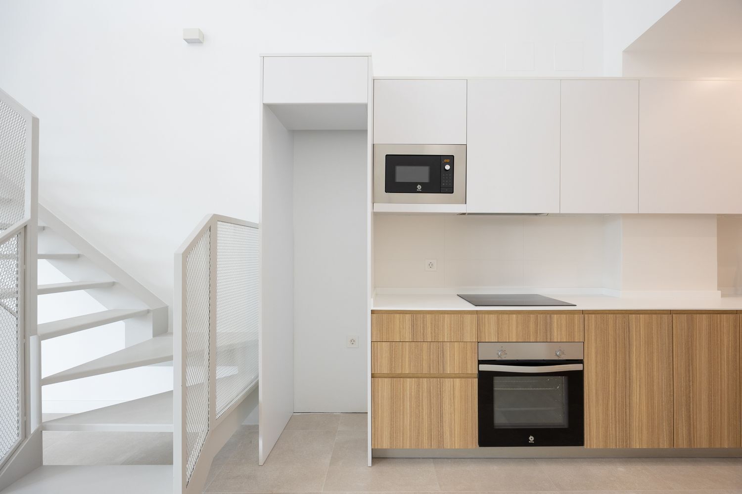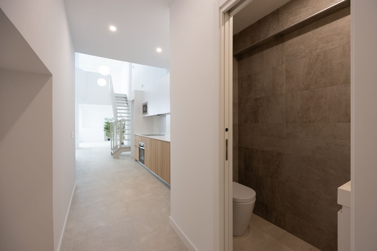 Las 5 viviendas cuentan con su propio portal de acceso desde la calle, moderno y funcional, lo que las dota de una gran exclusividad y privacidad con respecto al resto del edificio. Todas son de tipo dúplex, con un diseño singular que las hace únicas. La planta baja se destina a recibidor, distribuidor, gran espacio abierto para salón – comedor y cocina, con muchísima luz natural, baño o aseo y cuarto para instalaciones y lavandería. En la planta alta se ubica el dormitorio y el baño propio (no en todas las unidades), sin ocupar todo el espacio, de forma que con el juego de volúmenes se consiguen techos muy altos y una excelente distribución de la luz y el espacio entre ambas plantas. Las escaleras gozan de tiro amplio, cómodo, abierto y están fabricadas a medida de cada dúplex en una sola pieza metálica, perfectamente integrada en el diseño de cada vivienda.