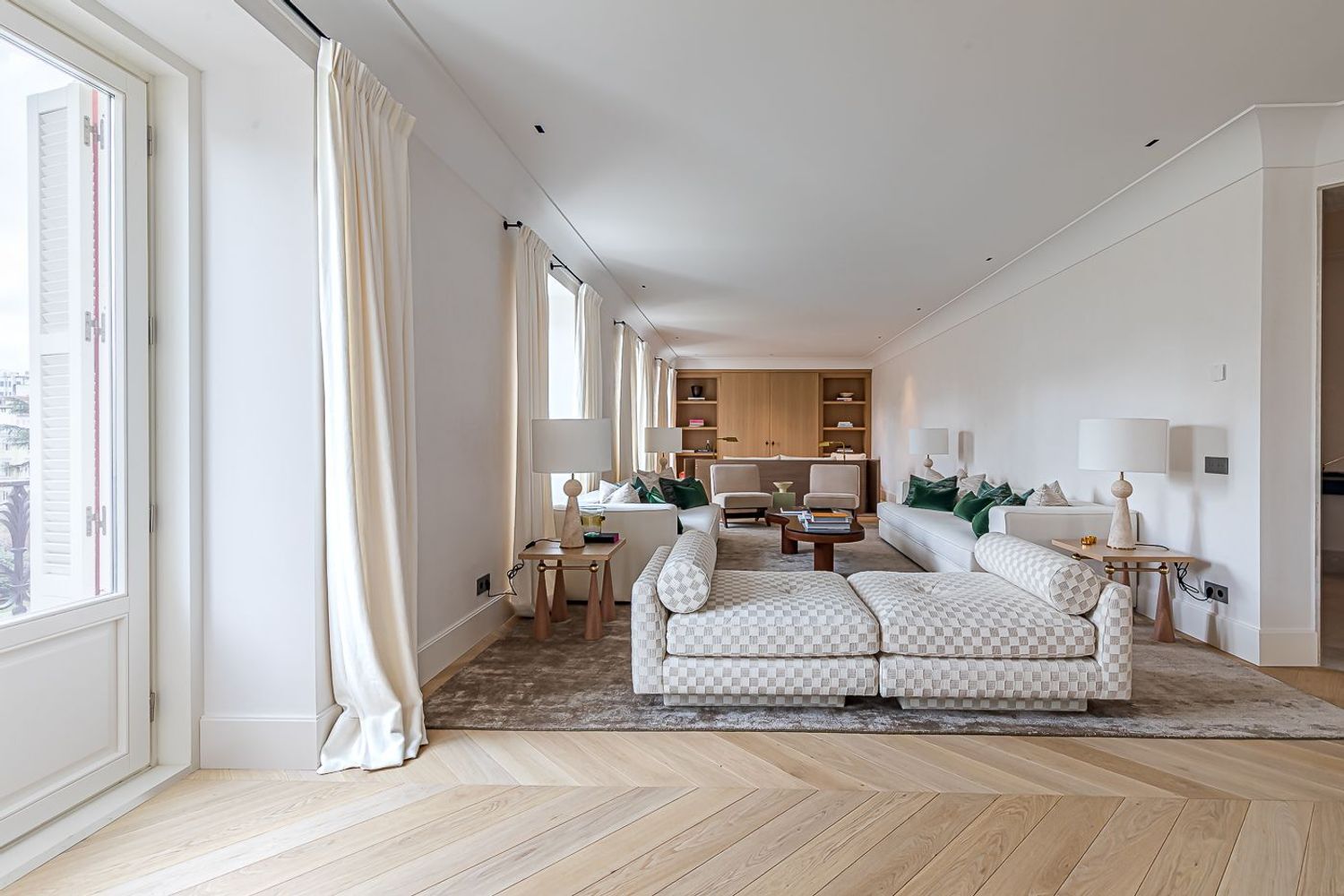 El gran salón, de proporciones majestuosas, se abre al paisaje urbano con cinco balcones alineados, creando un escenario de película para la vida diaria, no es solo un lugar donde vivir, es un espacio diseñado para enriquecer tu día a día, un refugio en el que cada rincón tiene algo que ofrecer.
