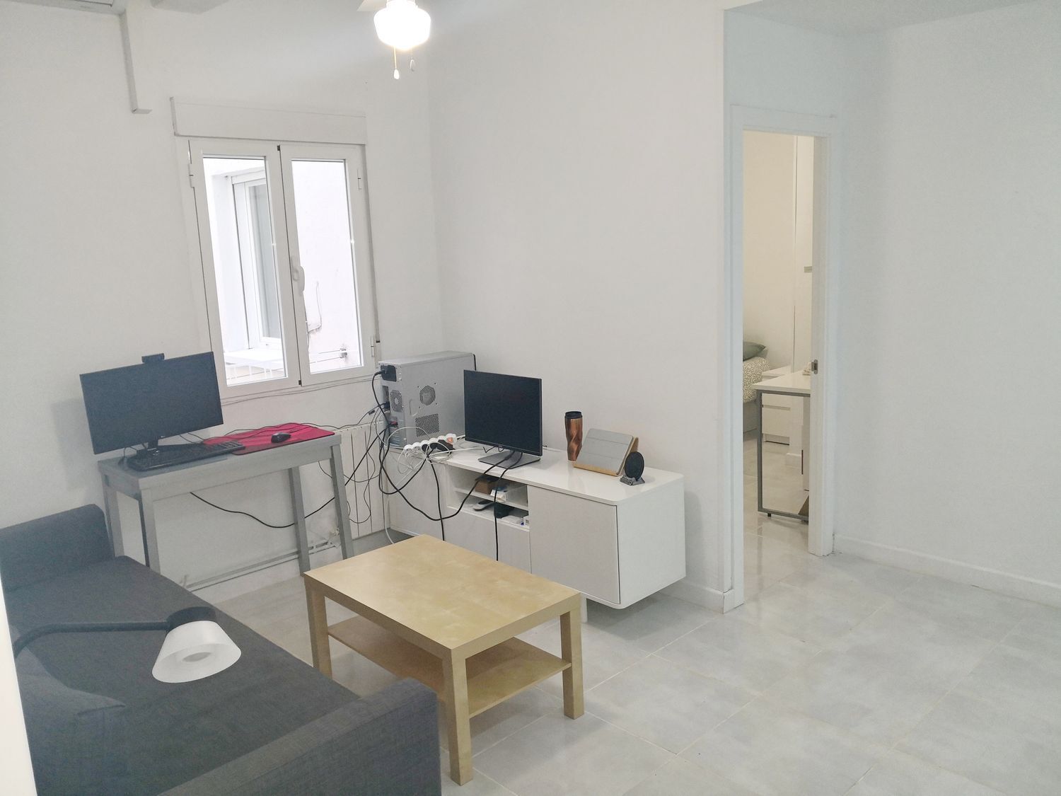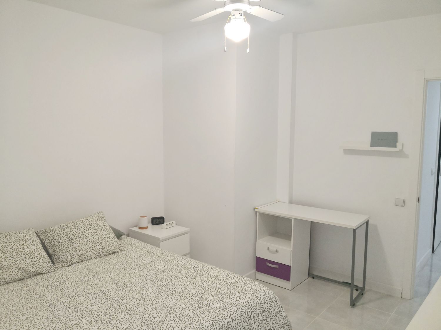 El dormitorio principal es amplio, dispone de un armario de dos cuerpos y ventilador en el techo. Cuarto de baño con plato de ducha y toallero radiador.