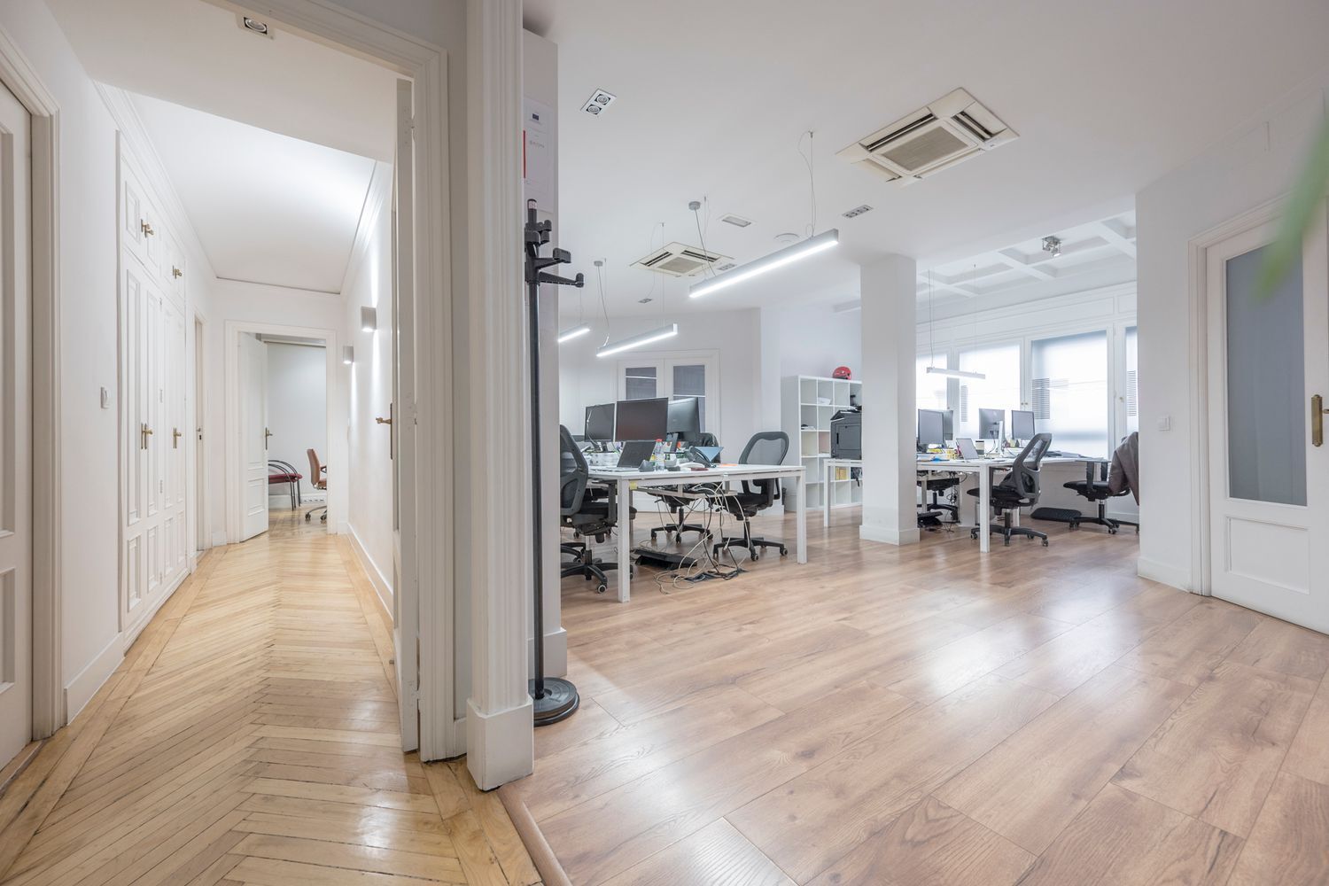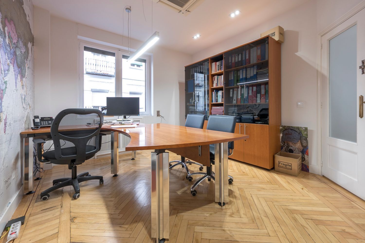 La propiedad dispone de 2 baños, una cocina funcional y una sala de reuniones. Con calefacción central, aire acondicionado por canalización y suelos de tarima, combina confort y funcionalidad. Todos los trabajos de reparación ya están realizados y pagados, lo que te permitirá disfrutarla desde el primer día sin preocupaciones.