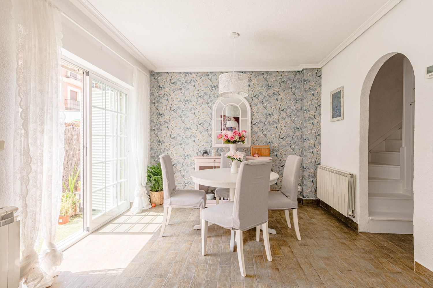 Planta baja: amplio salón-comedor con salida directa al jardín, perfecto para momentos de reunión o descanso. Cocina independiente con zona de office y acceso a una terraza ideal para desayunos al aire libre. Además, dispone de un aseo de cortesía.