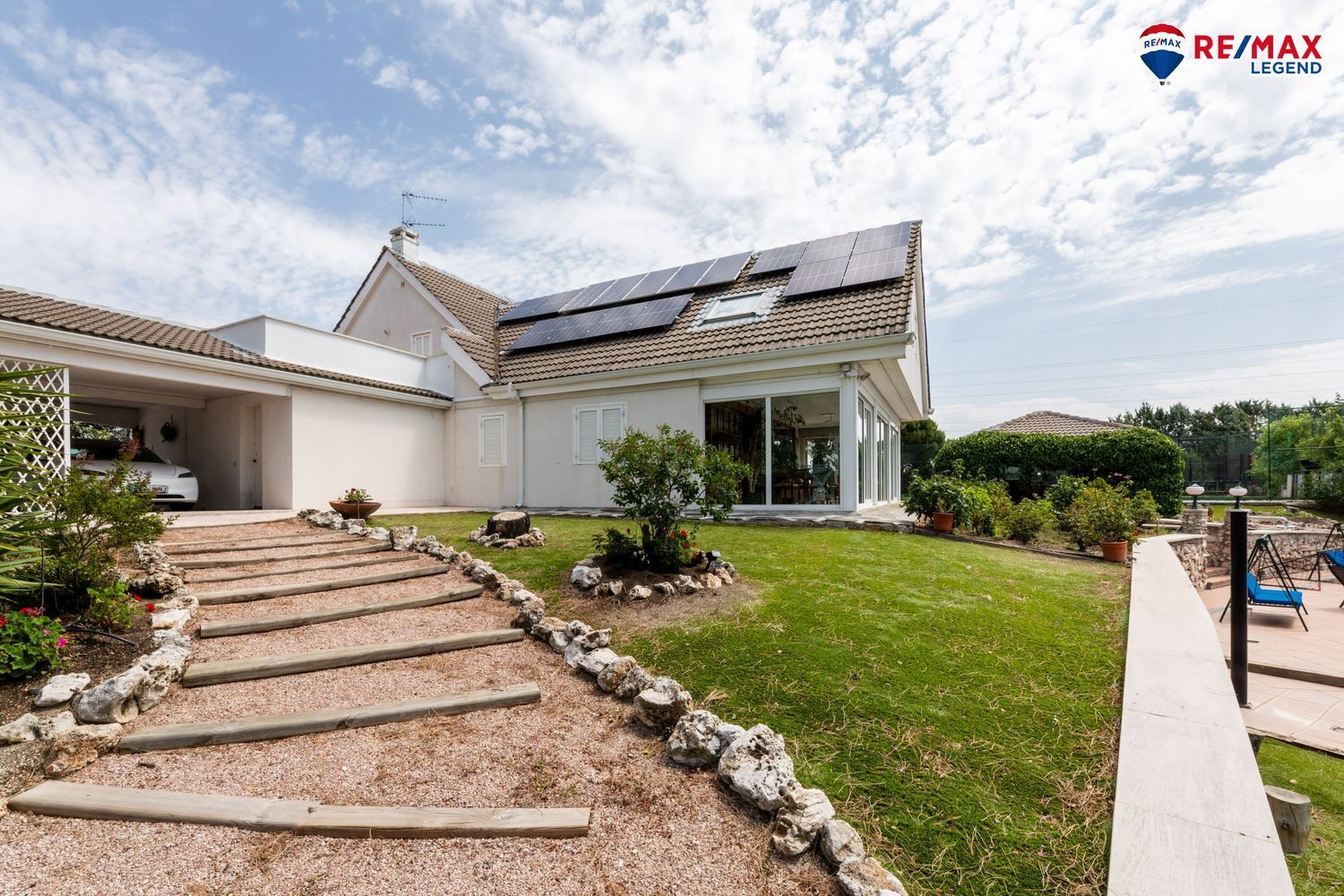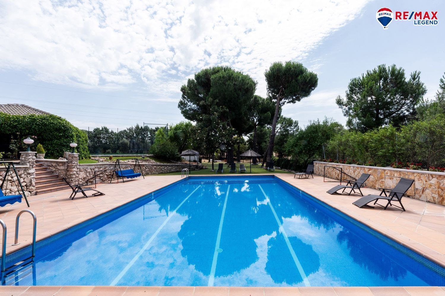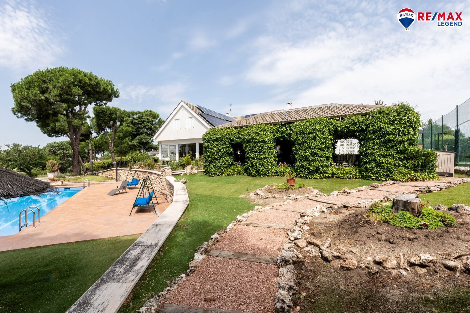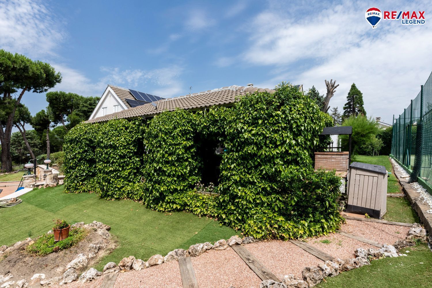 La vivienda se asienta sobre una parcela de 4.140 m², con un jardín de ensueño cuidadosamente diseñado y mantenido. Dispone de aproximadamente 500 m² de césped natural y 1.000 m² de césped artificial, ideal para bajo mantenimiento y uso intensivo. Los paseos se encuentran integrados con elegancia en el paisaje. En este jardín consolidado con riego automático también nos encontraremos con rosaledas, abetos, magnolios, pinos, entre otras variedades de árboles y plantas.