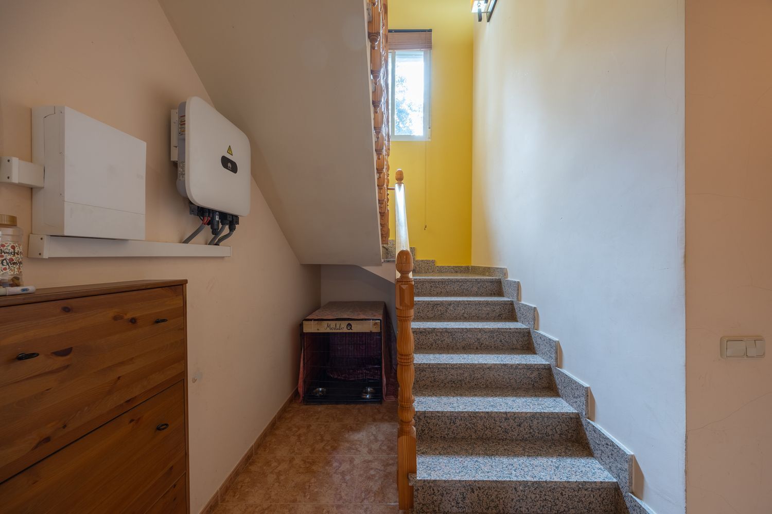 Una cómoda escalera de dos tramos conecta las dos plantas, aportando un toque arquitectónico. Las múltiples áreas de estar, junto con oficinas y dormitorios, convierten esta casa en un hogar versátil, adaptable a diversas necesidades.