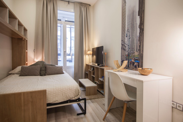 Se alquila estudio en calle preciados en Madrid, totalmente equipado y con todo los gastos incluidos ( lo unico que no esta incluido es la luz).