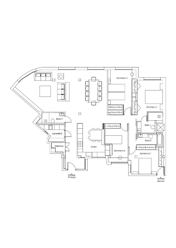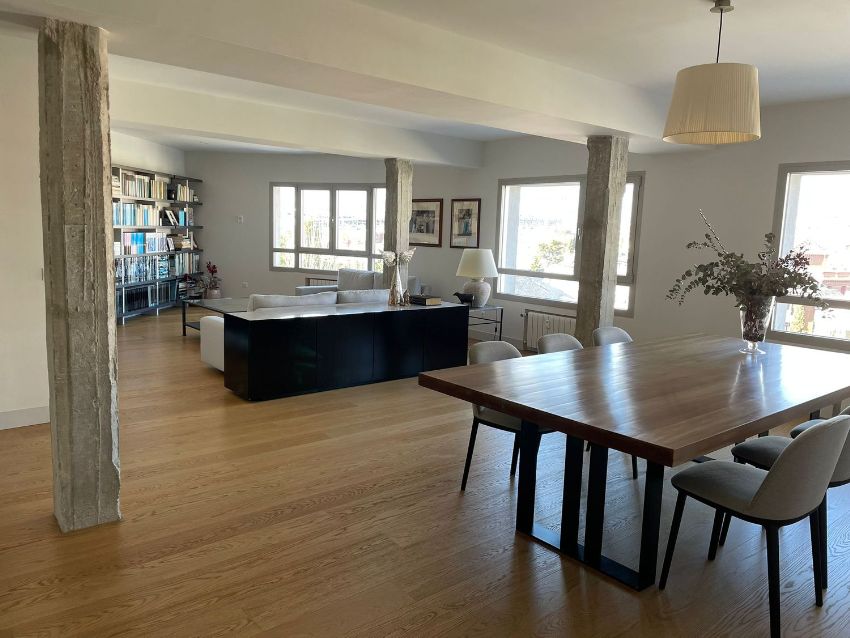El hall de entrada, con armarios gabaneros, lavandería y baño de cortesía, da acceso al amplísimo salón comedor muy luminoso, con grandes ventanales y extraordinarias vistas al Viso.
